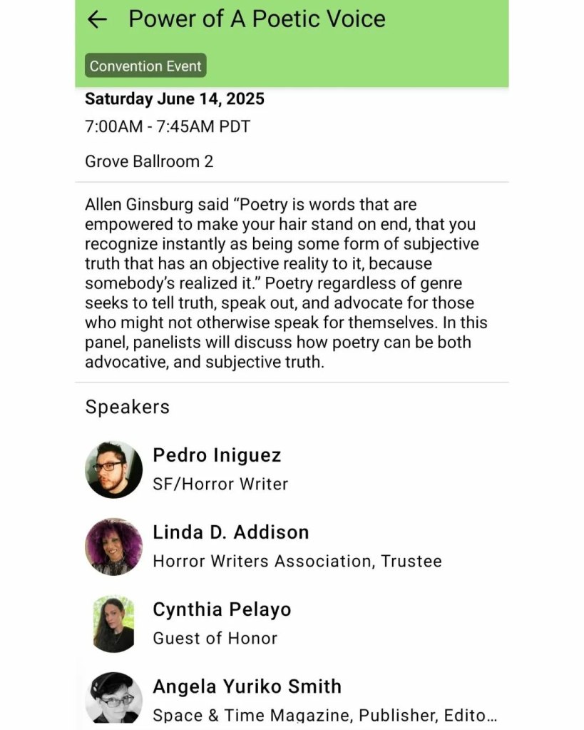 -I attended my 2nd StokerCon (Stamford, CT) where I was on 3 panels; 1) How to Promote Your Book without a Big Budget; 2) Power of a Poetic Voice; 3) Horror as Resistance.
