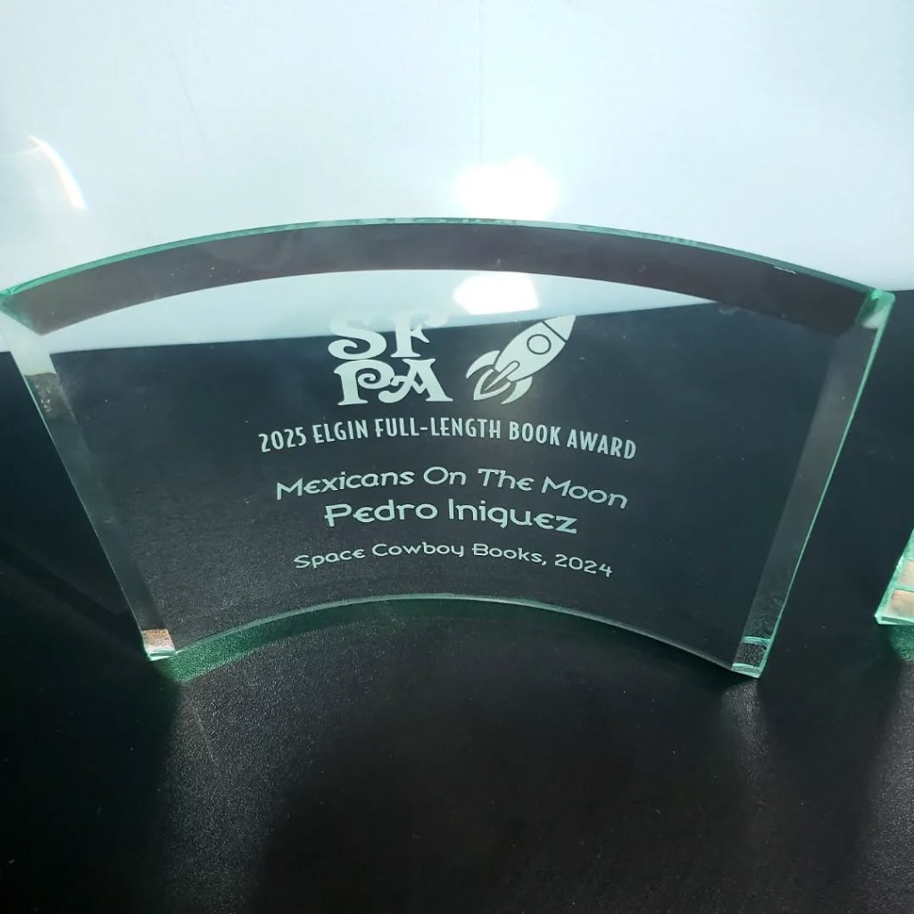 -Mexicans on the Moon won the SFPA’s Elgin Award in the Book Length category. I became the first Latino to win the Elgin’s Book Length category award. I also became the first person to win the Stoker and Elgin in the same year.